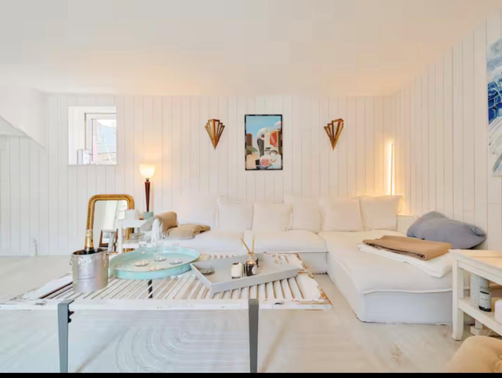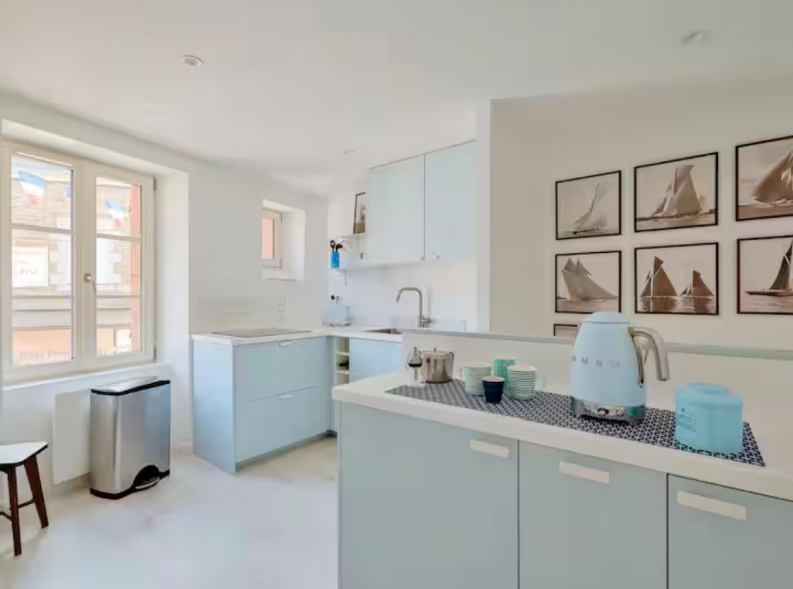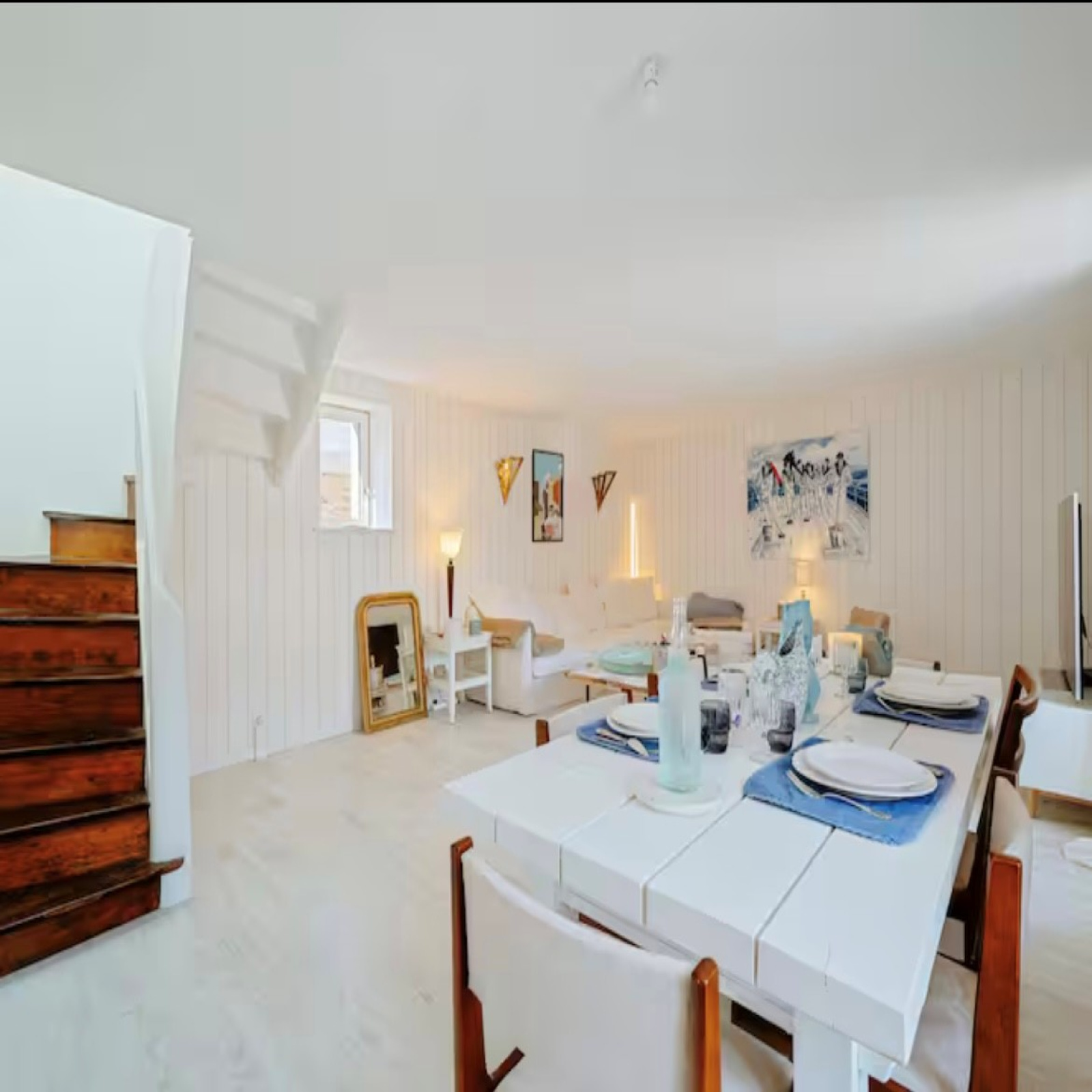 Cet appartement est composé au rez-de-chaussée d'un palier avec vestiaire et wc, à l'étage un séjour ouvert sur la cuisine entierement équipée.
