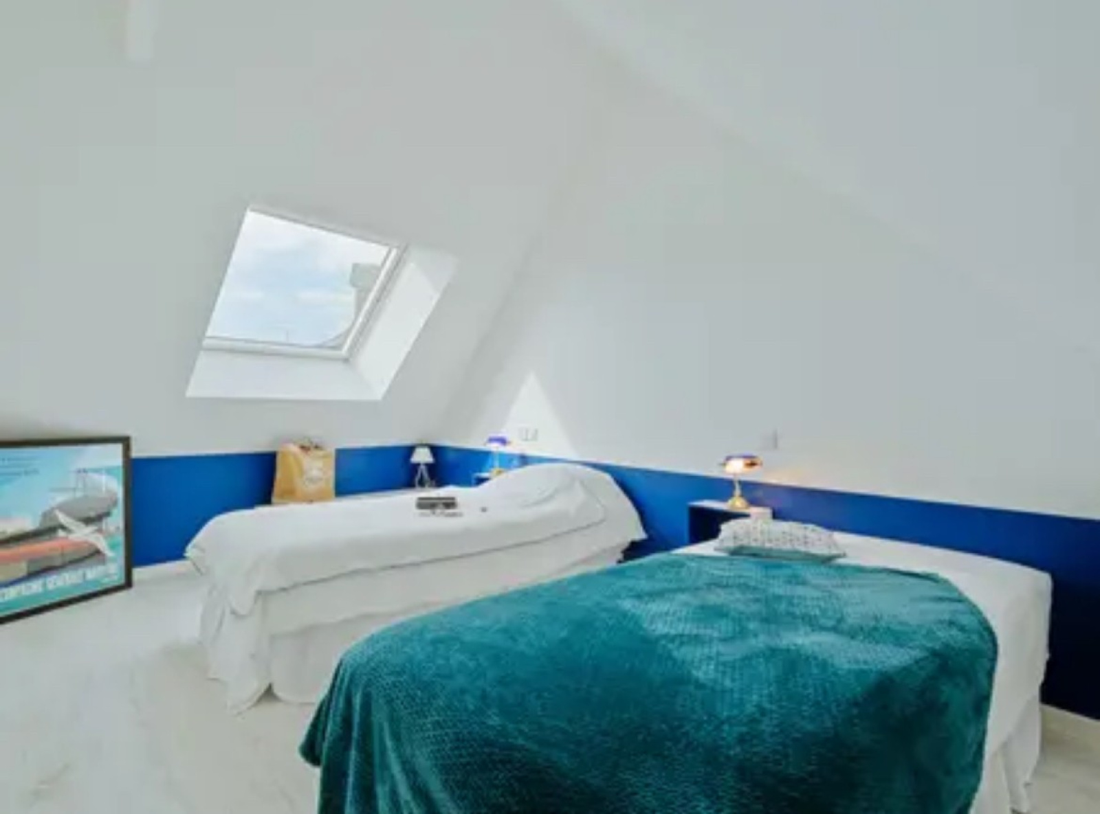 Au deuxième une chambre (un lit 160) avec salle d'eau et wc, une autre chambre (deux lits de 90) avec salle d'eau et wc.